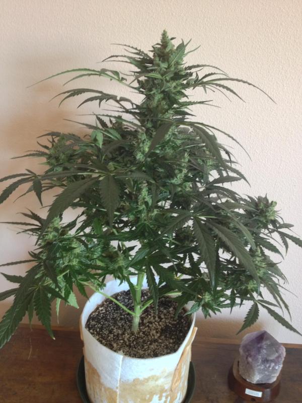 Я выращиваю одну штуку на улице. Она цветет всего две недели, но уже видны трихомы, очень красиво. Пока не пахнет...