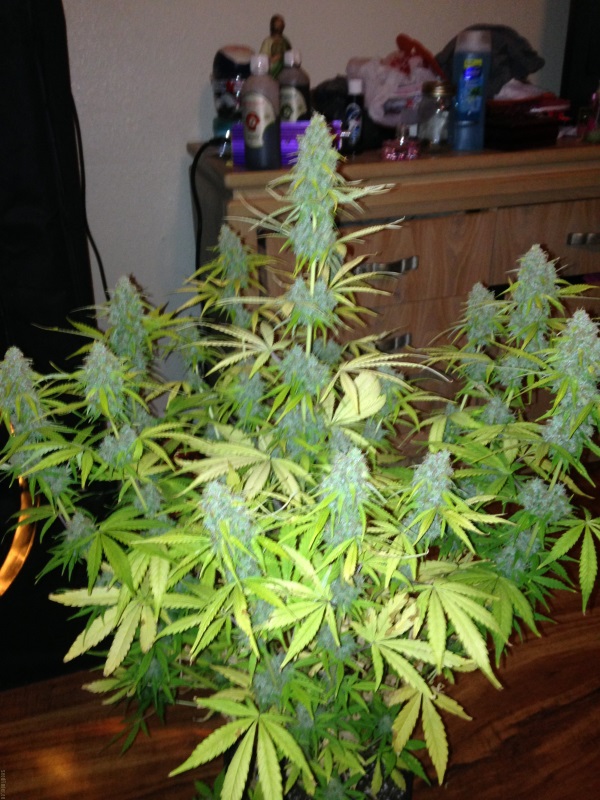 С чисто визуальной точки зрения культура выглядит довольно ярко, красиво и внушительно. Зеленое, сочное растение, стройное и вытянутое, покрывается большим количеством соцветий. Пройдет совсем немного времени и растишка практически полностью скроется за слоем плотных, тугих, среднего размера изумрудных шишек. Плотный слой трихом, покрывающий почки, навевает воспоминания об инее или нежном, стильном, блестящем морозном узоре.
