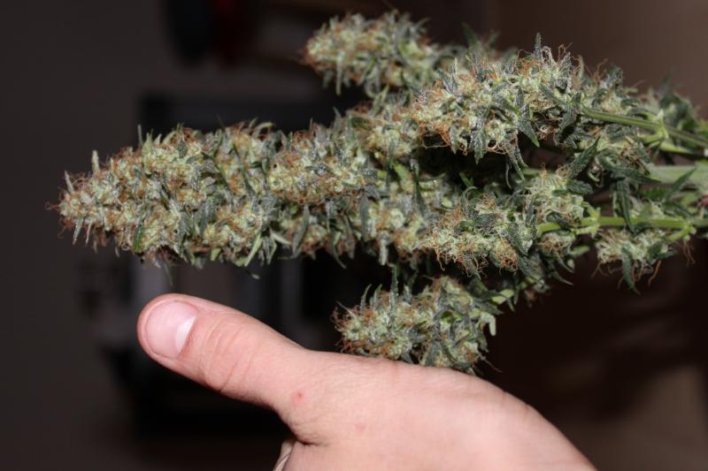Доехал до растения, опять не срезал, оно отращивает новые шишки. Может на следующей неделе. Жаль нет возможности на трихомы посмотреть под увеличением.