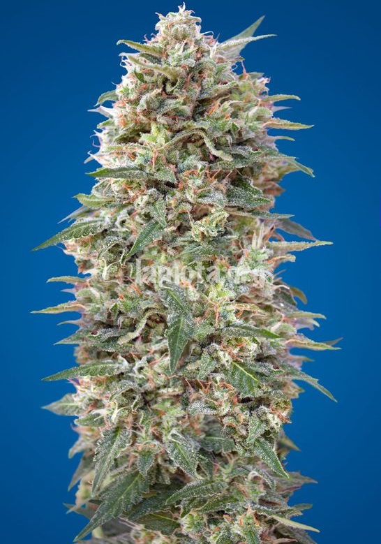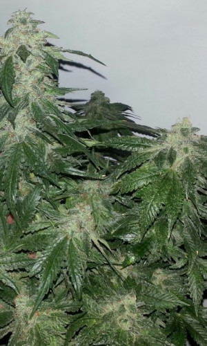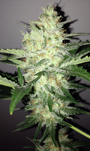 Эта гостья из солнечной Калифорнии сделает честь любому коноплеводческому саду. Такое ощущение, что на растиху просто высыпали огромную банку белоснежных, влажно блестящих кристаллов. Она усыпана ими практически вся, сверху и до низу.
